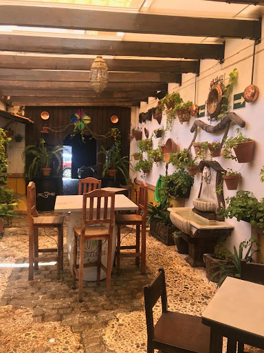 Local amplio con estética mesonera. Tiene dos plantas, la baja con salones a diferentes alturas, lo que hace que sea más íntimo y agradable y la planta de arriba que cuenta con un salón único, no muy grande. A mí, personalmente, me gusta más la planta baja.