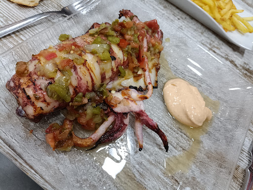 Read moreFuimos a comer una paella de carabineros. Pedimos dos entrantes (ensalada de tomate con ventresca y croquetas) Los entrantes estaban muy buenos. En cuanto a calidad-precio de los entrantes no estaba mal, para mi gusto caros para la cantidad que llevaba. Lo que me sorprendió fue la paella. Pedimos una paella para 6 personas (5 adultos y 1 niño) y cuando vino era una paellera para 4 personas. El niño ni comió y 2 personas se tuvieron que echar un plato pequeño para que todos pudieramos comer, contando que la racion eran 22 eur. (la paella total 144 eur). De calidad normal-bajo. El sabor del arroz soso y duro. En cuanto a los postres ya fue la guinda del pastel, nos cobraron 7 euros por una bola de helado y otros 7 euros por una "tarta de manzana" que cuando la vimos era una tortita del tamaño del culo de un vaso con manzana por arriba, además estaba tan dura que no se podia ni partir. En cuanto la atencion recibida...