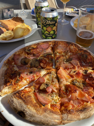 Read more"Comimos" el día de Reyes. Hicimos una reserva unos días antes para 8 personas,pero por el covid no pudimos ir nada más que 4. Llevamos un poco antes de las 3 y cogimos 3 raciones a la espera de pedir pizzas. Cuándo las pedimos ( sobre las 3,40)nos dijeron que ya la cocina estaba cerrada. Es verdad que más raciones junto con los aperitivos que nos pusieron estaban buenas y llenaban,pero mi hijo que es muy rarito para comer se quedó con hambre. Tuvimos que ir a otro sitio a pedirle algo y se lo comió en casa. La pena que con el cabreo que tenía mi marido me quedé sin Torrija ( que...