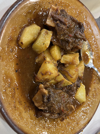De plato principal pedimos Rabo de toro la especialidad de la casa a recomendación de la persona que nos atendió. La carne de rabo de toro buena, tierna y jugosa . Pero las patatas wow. Estaban refritas varias veces, revenidas y con un sabor a aceite de llevar tiempo en la freidora.