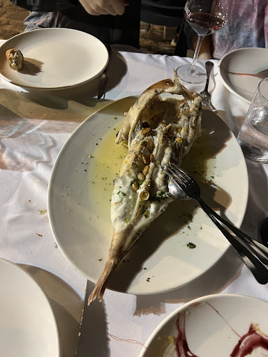 Para el plato principal, optamos por una lubina regada con un Mar de Frades. La lubina estaba cocinada a la perfección, con una piel crujiente y una carne jugosa y tierna. El Mar de Frades, un vino albariño, realzaba los sabores del pescado con su frescura y notas cítricas, creando una combinación exquisita.