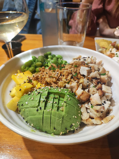 I ordered the Montenero Burger which was a great choice. It’s a monster with 2 meat patties each coated in cheese, with tomato, dill pickles, salad, and fried onions served with french fries on the side. My wife was also happy with here choice of vegetarian poke bowl.