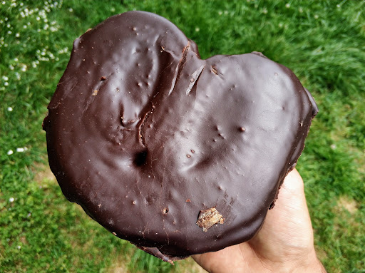 La normal, choco parecido pero más oscuro quizás. Hojaldre gordo, que no me convence ni en textura ni en sabor. Apenas capto sabor a mantequilla, y es un poco plastiquete aunque se deja...