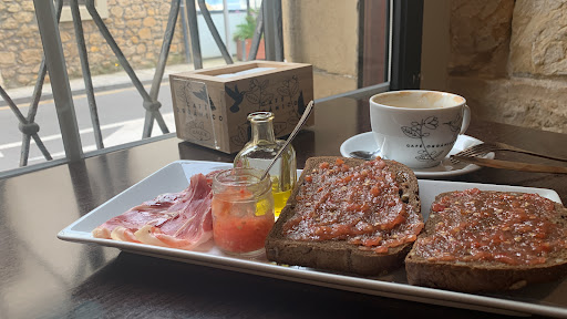 Read moreSituado al final de la calle Amesti , muy conocida en Algorta, haciendo ya esquina.tirne dos entradas , la principal por la calle Amesti y otra posterior menos usada . Han hecho un reforma total, muy acertada , con muchos rincones acogedores , con la planta principal, dónde está la barra, una zona escaleras arriba , al fondo y otra zona escaleras abajo . Muy cuidados todos los detalles, tanto de decoración, como en su oferta Además de pinchos y bocadillos, lo más llamativo es el café y sus bizcochos. Todo excelente, comimos un bocadillo con pan de aceitunas negras, delicioso, junto a dos buenas raciones de bizcocho de naranja y de vainilla, ambos suaves esponjosos y , junto con un café , que te dan la elección de coger tu mismo , azúcar blanco , de ca caña ecológico, sacarina etc Todo ello muy limpio y aseado y ordenado Ya hemos estado dos veces...