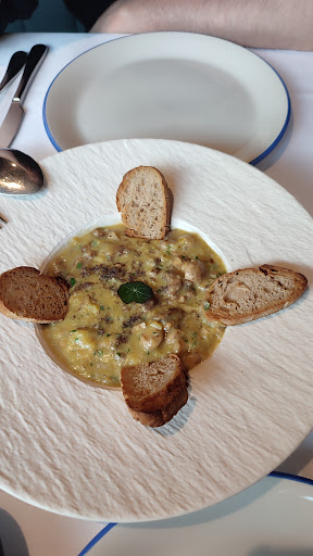 Read moreEl restaurante es precioso y muy acogedor. Todo estuvo de 10, el aperitivo fue pan tostado con crema de queso y salmón marinado casero, que estaba riquísimo. Empezamos con una ostra Daniel Sorlut, muy fresca y riquísima. Pedimos una ensalada de tomate con ventresca y cebolla, el tomate tenia un sabor brutal y el aliño perfecto. La mayor de las sorpresas fueron las gambas rojas de Palamós que las cocinan en el horno kamado, están cocinadas un punto menos porque el sabor de la gamba…insuperable! Y terminamos con la txuleta, la carne exquisita, el punto al que estaba cocinada era impecable.