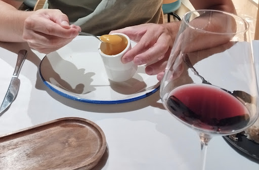 The menu is only available in Spanish, the waiter tried to explain the dishes, but it was very hard to communicate with him. What we found extremely negative is his pushing and selling dishes to us, although we have already decided what to eat. This paired with his bad English skills resulted in us two getting 2(!) appetizers for two persons, which doesn't make sense to be honest- we had ordered one and he kept pushing and explaining as if the second one was the addition to our main course. He recommended us great wines though.