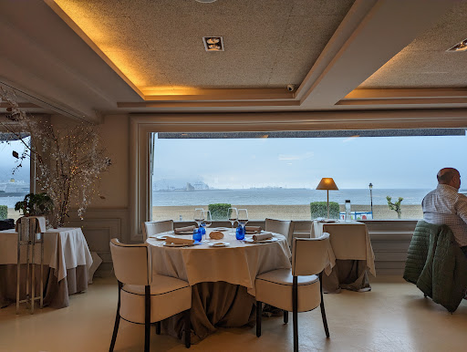 We came here last Sunday for lunch with a group of 15 people. Initially we were in the tavern downstairs and there was also confusion concerning the time of reservation. We thought 13h but it turned out to be 13h30, where the fault was entirely ours. However, by 13h15 we were allowed in without any problems. We were seated upstairs in a larger room at a huge table. It was somewhat reminiscent of a wedding party. So at first the atmosphere was a bit strange. However, the service was tremendously obliging and almost perfect. We were listened to and we were all allowed to choose a la carte. In Belgium, it often happens that with such a company, you can only choose a limited number of different dishes. We all took fish and it was perfectly prepared from the first to the last person. I have rarely eaten such delicious tuna in my life! After three days I was tired of gazpacho, but this restaurant's version with mint and strawberry tasted excellent! We were served bread several times and were always allowed to choose from several varieties. We also liked the wine so much that some of us scanned the bottle to purchase it ourselves later. At dessert, someone in our party requested Irish coffee and although this seemed an unfamiliar concept to the service, it was agreed to. The Irish coffee seemed to be 50 percent coffee and 50 percent whiskey, but tasted no less (and it made us laugh). For me the best meal of my stay in and around Bilbao, despite the atmosphere of the room haha. My recommendation? Come by rental bike from Bilbao along the Viscaya bridge, or take the metro from Bilbao to the bridge (Areeta stop) and walk another 40 minutes along the water to this restaurant, because you...