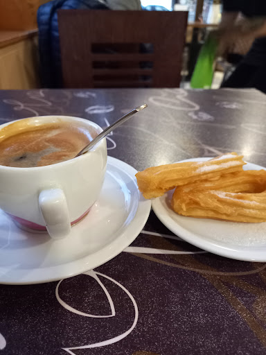 Read moreLocal limpio y buena atención Te ponen 2 churros de cortesía con el café, chocolate etc... y al Vermut nunca falta el pinchín. Muy buen café y chocolate ,raciones de churros calentitos y tostadas de pan pan . Cierra los fines de semana pero por semana está siempre lleno y las mesas se levantan rápido ya que tiene mucho paso y está muy bien ubicado haciendo...