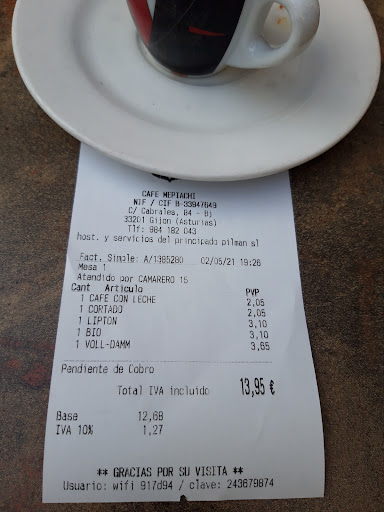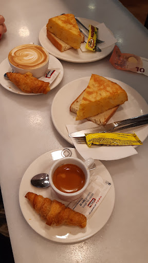 Read moreCafé sabroso y personal muy atento, más la primera vez que acudí, al tener ganas de orinar, vi a una puerta con solo una palabra extranjera encima, entré y había dos puertas, busqué la placa o letra que diferenciada la del hombre y la mujer, más no había nada. Oriné, me lavé las manos y salí a tomar el café. La segunda vez, observé que esa puerta solo la utilizaban mujeres. Estuve observando el local y vi que los hombres acudían a otra puerta, situada lejos, al otro lado de la barra tras bordearla toda. Pienso que en Inglaterra en ningún local rotularían en Español para señalar y diferenciar los urinarios. Algo parecido a los concursos musicales en TV, cuando cantan en inglés y lo permiten. Qué es que en Inglaterra pueden cantar en Español? ,. Lo dudo. Por tanto en en España primero rotulen en Español y si lo desean, a la vez pongan un añadido en Inglés. Claro que las placas rotuladas serían más caras. Volveré a tomar café, cuando pase cerca de Mediación. El...
