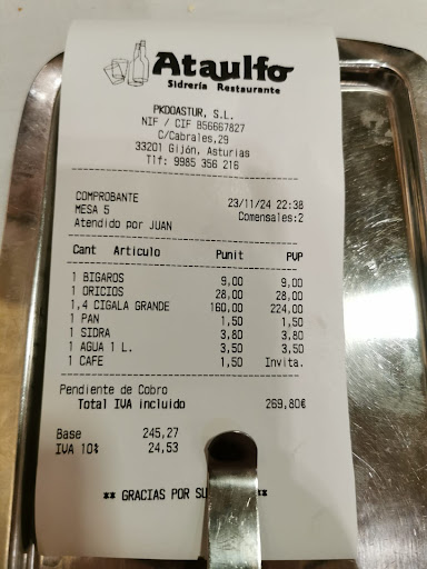 Read morePongo esta reseña con el perfil de mi hija. Ayer fuimos mi mujer y yo a pasar el día a Gijón y acabamos en esta marisquería para darnos un homenaje y pedir una mariscada. Pedimos unas almejas de entrante y la mariscada pero el camarero se empeña y se empeña en que la mariscada era mucho para nosotros dos, que no, que nos proponía una langosta. Tras MUCHA insistencia aceptamos porque no nos daba opción a no hacerlo y nos trae una langosta de 2 kilos 300 gramos, para 2 personas de 72 años. La sorpresa ha venido cuando nos han traído la cuenta. La mariscada que queríamos costaba 180 y la langosta que nos han enlosado (con las almejas y un par de bebidas) ha costado 366 euros. No nos hemos quejado por vergüenza y porque ya con nuestra edad no tenemos ganas de numeritos pero la sensación ha sido de habernos estafado. La langosta por supuesto no hemos podido comérnosla. Que te hagan una sugerencia que cuesta el doble de lo que tú has pedido y se empeñe y se empeñe el camarero ha sido algo increíble. Hemos vuelto a casa hechos polvo. De querer una mariscada variada, probar un poco de todo y darnos un capricho a volver a casa medio enfermos de no poder comernos lo que nos había puesto y además con un precio muy por encima a lo que teníamos pensado gastar. En fin. Una experiencia muy triste, sensación de estafa. Algo que jamás pensamos que nos...