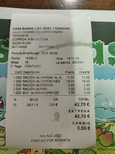 Read moreCasa Baizan is a very nice, cosy and has a homely feel to it. The food is very nice and good value for money. The waiters and waitresses are very helpful, polite and very friendly. Spanish is not my first language. However, the more I practice my Spanish, the more they helped me in English. They have an English menu, but wanted to practice my Spanish which was quite funny. I had the Prawns in garlic for starter and the grilled Sea Bass for main. The fish was very fresh and worth every penny. I ate here 3 times during my stay, and was never let down. If you are in town, it is a place recommend to have a bite to...