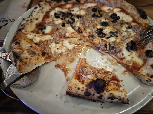La comida muy buena, las pizzas las más ricas que hemos comido nunca, las tres!!. Pedimos 4 Estaciones, Crazy Chiken y Tennesse BBQ, la cerveza rubia artesana me gustó mucho, el trato de la chica de 10, pero como digo luego en mesa un desastre, tuvimos que comer sin cubiertos y sin servilletas a pesar de haberlas pedido por 4 veces.