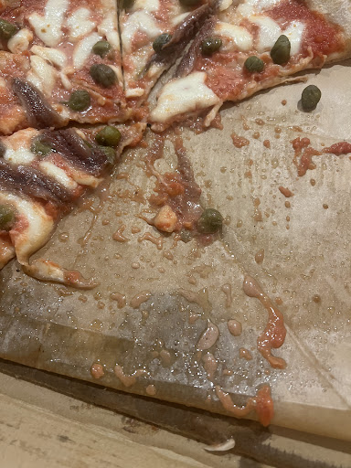 Realmente estaba sin cocinar, los ingredientes se caían de la masa, personalmente yo cogí un tenedor pensado “bueno estarán ricos, cojo un tenedor” pues no, también sin cocinar. Estaba aguada, tiraron el tomate por encima de la masa y claro así estaba, chiclosa. De verdad un desastre.