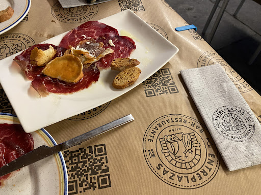 Encargado del restaurante ENTREPLAZAS PREPOTENTE y MALEDUCADO. En mis casi 50 años de vida y después de haber tenido la oportunidad de haber comido y cenado en cientos de restaurantes de Gijón, esta noche, en el restaurante ENTREPLAZAS, he vivido la situación más surrealista que recuerdo con una persona que, por su trabajo, se supone que debería ser la excelencia del trato al cliente, si realmente lo que busca en su negocio es fidelizar a sus clientes. Les cuento la situación….éramos 5 personas para cenar, 4 adultos y un niño. Preguntamos si tenían mesa en la terraza y las dos chicas que estaban atendiendo la terraza nos atendieron de una forma exquisita. Una vez sentados en una mesa de 4, el espacio para comer era muy escaso para poder hacerlo de una forma cómoda, ya que éran cinco sillas las que ocupaban el espacio, por lo que decidimos, tras comentárselo a una de las camareras, juntar dos mesas para comer de una forma cómoda unos platos que por el precio que te los cobran, que al menos lo puedas hacer de una forma agradable. No habían pasado unos minutos desde que juntamos las dos mesas de la terraza, cuando se presentó dicho personaje en nuestra mesa, preguntándonos cuántos íbamos a cenar, y ante nuestra respuesta de que éramos 5, su contestación fue de que éramos 4 y medio, en alusión a mi hijo de 7 años. Tras lo cual, de forma inquisitoria nos exigió que le dijésemos que camarera nos había autorizado a juntar dos mesas, y tras decirle que se lo habíamos comentado a las camareras, nos increpó con que la normativa del local no permite que los clientes junten mesas y que muchas veces cinco personas comen en una mesa de cuatro. Una normativa inventada por el restaurante y que evidentemente todos las habitantes de Gijón la conocen….”la normativa de restaurante Entreplazas” una normativa mundialmente conocida en Gijón. Tras dicho alarde de atención al cliente, de fidelización, de trato exquisito a quienes te dan de comer, de profesionalidad, de empatía, de vocación de servicio, de sensibilidad con los niños y sobre todo de visión de negocio (evidentemente estoy siendo sarcástico) nos levantamos y nos fuimos, ante la respuesta de “como queráis” de dicho personaje. No fuimos al restaurante que está justo al lado, donde nos atendieron de forma exquisita unos profesionales que saben como llevar su negocio, a diferencia de un sobrado al que le dar un cargito de encargado y va perdonando la vida a los clientes. Me quedo con la expresión de la pareja que estaba en la mesa de al lado y no daba crédito a lo que nos está diciendo este personaje. Gran proceso de selección el que realizó la gerencia del local con este campeón de la excelencia del trato al cliente. Ahora entendemos como había tantas mesas libres...