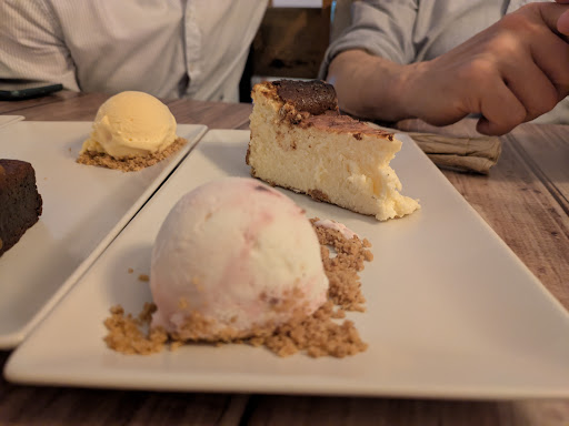 Bar de tapas en el corazón de Gijón. Vermú y tapas por bandera, en la planta superior hay mesas para comer sentados a altura usual. La parte de abajo mesas altas y muy buen ambiente. Carta escueta, más que suficiente para salir bien y con la sensación de haber comido rico. Recomiendo reserva, fuimos 10 un viernes, sin problema. Pedimos timbal de burrata, bravas, gyozas, carrillera (estaba riquísimo), torreznos de Soria y de postre probamos los 3 de la carta, brownie, de queso y de limón (este el mejor). Estaba todo muy bueno, por decir, no esperéis raciones grandes pero quedas muy bien. El pan es tostado, no se puede mojar y eso que apetece. Pedimos cervezas, aguas y refrescos, y salimos a 27€ por persona. Calidad precio recomendable por localización para un día de cañeo en el centro. No esperéis encontrar aparcamiento cercano, directamente a un parking subterráneo si vais con prisa. La parte de arriba no está adaptada. Tiene baños limpios. Servicio muy simpático y atento, fueron rápidos. Me quedé con las ganas de las croquetas de...