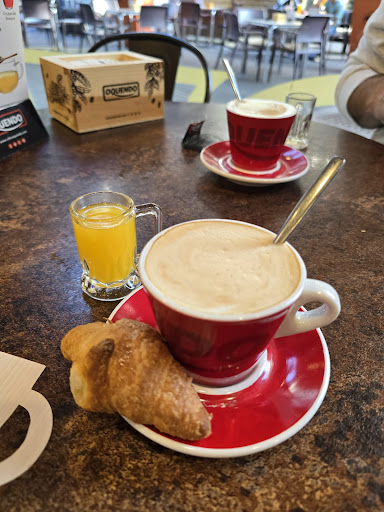 Read moreAl salir de la estación de autobuses mi madre y yo hemos decidido parar a desayunar. Nos han atendido súper rápido y nos han dado unas buenas recomendaciones para pedir. Hemos elegido: El desayuno mediterráneo: café con tostada de jamón serrano y tomate + yogur + zumo de naranja (7,70€ ) El desayuno asturiano: tostada con aceite, huevos revueltos y bacon + café y un zumo de naranja (7,60€) Con el café te daban un pequeño cruasán 😊 A mi parecer estaba todo buenísimo. En los menús podías o no incluir el zumo, al igual que elegir el tamaño de la taza de café, en nuestro caso era la media/grande. Algo que no me gustó es que había muchísimo ruido y la música estaba bastante alta :( lo que impedía conversar tranquilamente. Por otro lado, no son los mismos lo precios si pides en la barra, en mesa o en terraza, para que se tenga en cuenta. Pero todo...