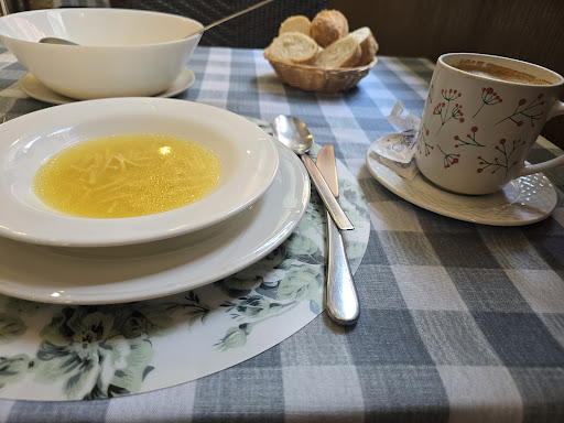 Read moreMi pareja y yo fuimos a comer a este restaurante debido a la buena valoración que tenía y a la atractiva propuesta consistente en un menu fijo del día a un precio bastante competente. El lugar es pequeño y acogedor lo que propicia que estés agusto y cómodo durante la comida. El personal es muy atento, simpático y amable, un 10 para ellos. El menú del día consta de 3 platos y puedes elegir entre postre o café. Las bebidas no están incluidas. No puedo decir que la comida estuviera mala, pero sí me decepcionaron algunos platos. El menú que elegí constaba de sopa de fideos (era claramente de sobre o directamente agua con mucha pastilla de caldo), guisantes con jamón (estaban ricos) y una merluza en salsa verde (sin duda lo peor). La merluza era congelada de la que venden en bolsas grandes para restauración y la salsa verde era un engrudo de agua con pastilla de caldo, harina y un poco de ajo/perejil. Este plato me decepcionó ya que esperaba algo más estando en Gijón con todo el buen producto que tienes a tu alcance. Mi pareja, además de la sopa, eligió arroz blanco con huevo y tomate (le gustó) y pollo al ajillo (estuvo rico aunque eran más bien trozos pollo frito con patatas fritas). En cuanto al postre, las opciones eran helado corte de turrón o natillas. Ambos pedimos el helado (sin más) ya que vimos las natillas a otro comensal y parecían de polvos. En resumidas cuentas, me gusta el concepto del restaurante, la gente que trabaja allí son agradables y simpáticos y el lugar es acogedor, pero creo que deberían ser “más honestos” con la comida y tratar de servir siempre producto fresco y casero, en vez de utilizar “trucos” que abaratan costes y...