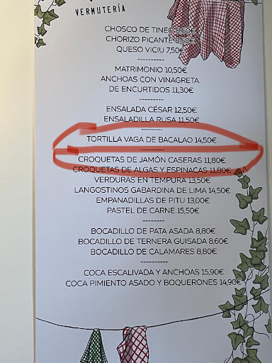 Fuimos por recomendación de dos amigas locales, y un verdadero acierto! Íbamos sin reserva y aunque nos dijeron que estaba lleno y nos avisaron muy amablemente que podría ocurrir que no pudieran atendernos, nos quedamos tomando una caña en la barra, mientras hacíamos tiempo, esperando que una reserva fallase. Las camareras fueron amabilísimas, nos encontraron mesa y estuvimos muy a gusto. Pedimos croquetas de jamón, espectaculares, cremosas y muy ricas, también tortilla de vaga de bacalao, muy rica ligera y original. Un imprescindible para pedir la próxima vez, y luego langostinos gabardina, que si bien estaban ricos, la gabardina era demasiado gruesa para mi gusto. Finalmente el postre: tartaleta de manzana! ESPECTACULAR! Para pedir 5 y no compartir con nadie… aunque no se me dió (lo de no compartir) El servicio te hace sentir como si fueses de casa. Un auténtico placer comer allí! Y eso que no probamos el vermú! La cuenta fue muy razonable, barato para el servicio y la comida. 54€ dos...