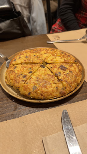 Read moreEl servicio en mesa es malísimo, las buenas reseñas serán por la gente que lo coge para llevar (que además la calidad no merece nada la pena, son tortillas industriales con la patata medio cruda y el huevo líquido). Sobre el servicio: para empezar, cuando decimao que estamos preparados para que nos tomen nota, las dos camareras dicen que no les pertenece nuestra mesa y se van pasando el muerto. Hay una amplia carta de tortillas con distintos precios según si quieres pincho, bocadillo o una entera. Cuando vamos a pedir, tras esperar bastante, nos dicen que para pincho y bocadillo solo tienen disponibles las que hay en barra (la tradicional, de chistorra y poco más). Nos dejan un poco de tiempo para pensarlo pero se olvidan de volver a tomarnos nota. Nos llegan las otras dos raciones que pedimos, no están mal, pero terminamos con ellas y nos hacen esperar 20 minutos por los pinchos que pedimos porque la están haciendo (pero eso sí, a la gente que pide para llevar se la dan en el momento, y cuando la pedimos la tortilla estaba entera). Cuando por fin la traen, nos intentan colar que habíamos pedido bocadillo, cuando habíamos pedido pincho después de que nos explicaran que venía con un trozo pequeño de pan. No merece la pena, sin duda...