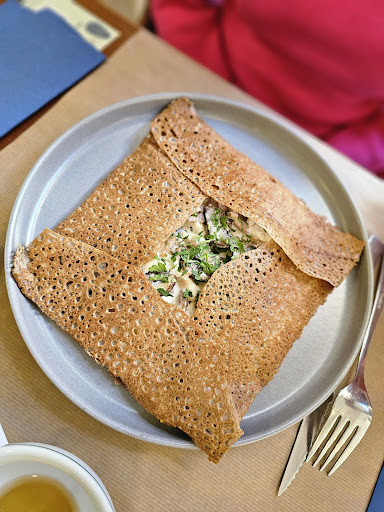 Read moreRestaurante con cocina de la Bretaña Francesa, donde poder disfrutar de unas ricas Galettes y como postre una buena Crêp. El local no dispone de muchas mesas por lo que es muy recomendable reservar antes para asegurarte mesa, ya que sino es posible que no dispongan de hueco, el personal es muy agradable y atento, te aconseja a la hora de pedir si nunca has visitado el lugar para que no pidas demasiado, y te explica toda duda que tengas sobre cualquier cosa de la carta y sus ingredientes. Si pides directamente Galette sin entrante tendrás que esperar un poco ya que se hace todo al momento y como es normal lleva su tiempo, pero bueno la espera siempre es mejor si la acompañas de una buena sidra bretona, la cual esta muy muy rica, si pasas no dudes en probarla. En cuanto a los platos, probamos diferentes Galettes y todas muy buenas, si tengo que destacar una diría que la Cocotte es buenísima!! La Baltique también muy buena, la verdad que las probadas todas muy buenas. Para el postre probamos unas Crêpes, y aquí sin duda alguna hay que destacar la Bretonne, que delicia, riquísima. Sin ninguna duda no tardaré en volver ya que quiero probar más cositas que había por la carta y sin duda volver a disfrutar de ese caramelo a la...