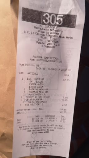 Dentro del edificio de la cadena de cines Yelmo , lugar característico como todos los Mc Donalds. Está bien para comer algo y evitar el gran gasto que supone comprar algo en el bar del cine, que tienen elevados precios en.la cafetería -bar ( iguales a los precios de un aeropuerto .A este McDonald se llega desde la Plaza del Humedal ,muy próxima a la estación de Alsa de Autobuses ,en el centro de Gijón, en sentido contrario (hay que cruzar hasta la otra acera ).Este McDonald's está a unos 2 kilómetros del centro de Gijón, en La Calzada .Se pueden tomar las líneas 12, 1 y 25 . En la línea 12, hay que parar en la Calle Uruguay. Caminar unos 300 metros. Tomad como referencia el centro comercial Carrefour. El cine está casi pegado en un edificio aparte. Como todos los McDonald's, la distribución, decoración ,sillas y.mesas, siguen el patrón que puede observarse en el McDonald's de cualquier provincia y país, por lo que la originalidad de estos establecimientos no es precisamente su punto fuerte, como tampoco lo son sus menús, idénticos en todas partes con variantes según las costumbres alimenticias de cada país. (por ejemplo : En India hay hamburguesas vegetales con especias y el popular en inevitable curry de este lugar por poner un ejemplo de referencia, aparte de las hamburguesas de carne ). Servicio muy correcto y amable. Precio ligeramente más caro que en otros McDonald's .En la parte exterior tiene un amplio aparcamiento. Pero si es hora punta, estará lleno. No está mal. Para salir del. paso, está bien. Y como alternativa para comer algo y no empeñar el hígado en la cafetería del cine, está bastante bien. En resúmen :Para la gente que quiere comer algo a precio asequible .No es necesariamente económico .Se pueden encontrar bares en.las proximidades con menús a buen precio, con comida más casera, natural y sana, más abundante y nutritiva con dos platos ,bebida y pan ,por poco más de 8 euros. Un menú de adulto de el McDonald's ronda los 6 a 9 euros o más (el menú infantil 3'95 euros ).Buena alternativa por comodidad y si se tiene...