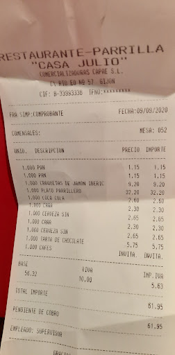 Edito porque mi reseña anterior está obsoleta absolutamente.Los camareros que hay son muy eficientes,te sirven bien en su justa medida. La atención de Marta es impecable,siempre en su sitio. De la comida que decir. Desde las jornadas del bonito,a todo lo que he probado de la carta. La ensalada de pulpo es fabulosa ,quizás a los mejillones a la marinera les falta "alegría" pero es lo único .Si pedís parrilla ya sea la normal o la especial de carnes rojas siempre perfec tas y a un precio muy competitivo. En definitiva y a lo largo de los años que llevo siendo clienta y pudiendo comparar con muchos lugares me quedo con Casa Julio. Vuelvo a editar,porque habitualmente leo reseñas que no se las cree nadie.Jamás han cobrado en barra por una sidra de Contrueces 4,10 a no ser que sea selección,la normal no está a ese precio.La camarera que dicen algunos,no es la camarera es correcta en el puesto que le corresponde como debe ser y no tiene obligación de ir jajajiji por las mesas.Que alguna ración es más escasa para el precio,seguro que si lo decís con educación os lo solucionan,que no os han puesto tapa con mogollón de cervezas extraño,porque es lo primero que te plantan mejor o peor siempre la ponen(lo de los kikos es infame cierto).Que a veces hay quien pone reseñas y se ve el plumero.Y que conste que no tengo vinculación alguna más...