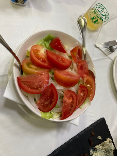 Read moreLlamamos previamente ya que nos acompañaba nuestro perro lo que nos confirmaron que tendríamos sitio en la terraza así que indicamos qje sería para 4 personas. La terraza está cruzando la calle por lo que el camarero se ve obligado a pasar entre en trafico que normalmente es abundante.... Pedimos el menu del día en el comedor a 16€ y en la terraza a 18€. De primero una ensalada, luego unos macarrones a la carbonara o garbanzos (con su chorizo, pollo, y carne, muy ricos) y a continuación hamburguesa o fritos de merluza, de postre en nuestro caso tarta o arroz con leche (rico pero le falto un poquito más de cocion) Unos cafés y a pagar 20€ por persona. Las sillas de terraza están bien para tomar algo pero para comer son un poco incómodas. El camarero que nos atendió...