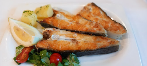 De primero entremeses fríos y calientes, ensaladas mixtas con salmón, el segundo plato a elegir de la carta, pedimos: solomillo, solomillo al foi, pixin (rape) y la mejor lubina al horno que hemos comido jamás, todo regado con un buen Rioja y un excelente Albariño.