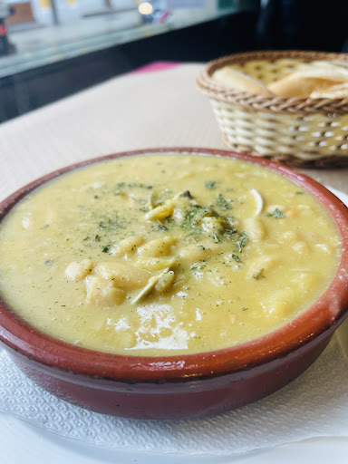 A decent place for lunch but I wouldn't risk it for dinner. A lot of things are claimed to be "home made" but they are either not home made or really badly made. In our we had the lunch menu, but ordered some extra croquetas, these were really bad and frozen. The first dishes of the menu were ok, bean stew with clams and the local chard stew were abundant and warming. For second dishes I had bream, it was nicely cooked with garlic and some potatoes, but the other dish, pork fillet with cabrales blue cheese sauce, was really bad, there wasn't almost any flavour in the sauce and most medallions were undercooked.