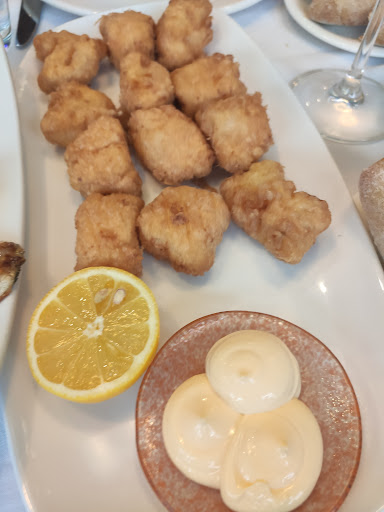 La comida de más a menos pero correcta. Unas excelentes zamburiñas (avisan que son volandeiras), unos buenos calamares fritos y uno fritos de merluza también buenos. Pedimos también pixín y lubina. Bueno y bastante el primero y demasiado hecho el segundo. Lo preparan a la plancha, no dan opciones. Postres correctos...