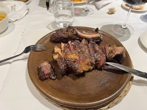 Read moreNo dejo cero estrellas porque no se puede. El trato que recibimos en este establecimiento fue lamentable. Tomamos un entrante y un pescado correctos, cuando llegó el chuletón más de la mitad del mismo era grasa, lo cual de por sí ya no es agradable. Decidimos darle una oportunidad a pesar de que la pinta era pésima, pero la carne estaba totalmente chiclosa y completamente insípida, con lo que decidimos devolverlo. Nos preguntan si queremos otro, pero sinceramente, después de probar ese se nos habían quitado las ganas de comer ninguna carne. El camarero vino a discutirme que no todos los chuletones son iguales. Correcto, unos son buenos y otros malos. No tengo porqué comer uno lleno de grasa que no cumple los standares ni de presencia, sabor o textura de un supuesto buen restaurante donde había comido chuletón en anteriores ocasiones y nunca había tenido ningún problema. Pedimos un postre y la cuenta. Cuando llega la cuenta nos encontramos que nos cobran el chuletón del cual habíamos comido lo justo para ver que estaba malo (ni 2 bocados) se lo digo al camarero que nos trae la cuenta y con cara de poker nos dice que lo va a comentar con gerencia. Nos traen la cuenta corregida( aun así 70 euros) y después de xpagar, nos dicenque el chuletón estaba bien, y que se consideran estafados y que no volvamos. En lugar de disculparse y aceptar que el chuletón era malo que era lo que tendrían que haber hecho. Estafados de que? Me da la risa MUy poca clase la de esta gente, tratar así a clientes que habían ido varias veces y nunca habían causado ningún problema... Que no se preocupen que no volveré y haré correr la voz del buen trato que dispensan a...