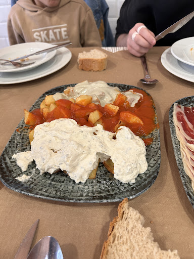 Read moreComimos unos entrantes para compartir , y posteriormente, un arroz con almejas y pixín (rape), que estaba delicioso. De entrante, comimos unas patatas tres salsas, que fueron las más ricas que probé en mucho tiempo. También comimos una tabla de embutidos, unos torreznos, y unos calamares. Estaba todo muy rico, salvo los torreznos, que no tienen nada que ver con los que se comen en Castilla. Me decepcionaron un poco . De plato principal pedimos un arroz con almejas que estaba delicioso, y muy abundante. Por ponerle algún fallo, decir que me pareció que tenía demasiados trozos de cebolla, y se notaban mucho. Luego para los postres pedimos tarta de queso, un bombón helado de la Ibense y flan. A destacar la tarta de queso. El pan que te ponen es de hogaza y estaba muy rico. Es un Sidreria que constantemente te están echando sidra mientras comes. No recuerdo la marca que tenían de sidra, pero sé que estaba buena. Un sitio recomendable, con comida rica y unos precios...