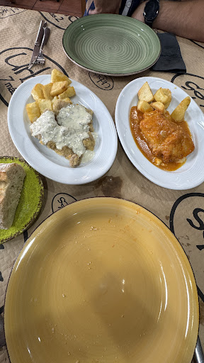No suelo poner reseñas pero esta vez me he visto "obligado". Lo vivido ayer raza lo surrealista. En la comida de ayer (25/10/2025) mis hijos pidieron un Cachopo. Después de bastante rato esperando el deseado Cachopo apareció. Le corto un buen trozo, del Cachopo, a mi hija y sorprendidos vemos como viene con un relleno que no es habitual. Separamos la carne y observamos que se han dejado un buen trozo de papel en el relleno. Llamamos al camarero y con mala cara se lleva el Cachopo completo a la cocina. A los dos minutos aparece sólo con una parte del Cachopo, la otra la tiro a la basura, nos dice que está revisado y que no está envenenado. La sorpresa llega en la cuenta cuando vemos que nos cobra el Cachopo entero el trozo "revisado" y el que tiró a la basura. Se lo decimos, de muy malas maneras nos dice que si queríamos un descuento y que nos lo habíamos comido entero. Cosa totalmente falsa porque con el "espectáculo" del papel y del camarero mis hijos apenas comieron del Cachopo No esperábamos un descuento, lo mínimo era una disculpa porque errores tenemos todos y si tienes mal día procura no pagarlo con los clientes. Una pena que el camarero tire por la borda el buen trabajo de sus compañeros. Gracias por las anteriores veces, que fueron bastantes, pero esta valió para que...