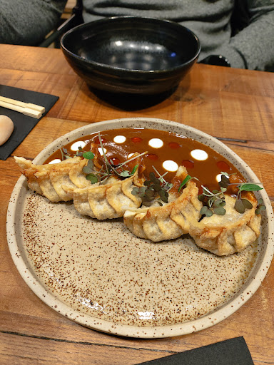 He de cambiar radicalmente la opinión que tenía de este restaurante (de 5* a 1*) La calidad y el servicio han bajado bastante, que no así su precio (he de decir que si vale la pena no me importa para nada pagar). Somos asiduos desde que abrió y hemos recomendado y defendido el restaurante con mucho gusto hasta hoy. Teníamos reservado a las 15, nos llaman diciendo que han tenido un problema con una mesa y que se retrasa la hora 10 minutos. Al final a y 30 nos sentamos y nos toman nota (ni una disculpa por la espera ni nada) tardan 10 minutos en servir las bebidas, nos preguntan si queremos todo a la vez, decimos que primero el ramen y luego todo, que al final fue de uno en uno y a cuentagotas, pedimos un tenedor dos veces por el que seguimos esperando... A mitad de servicio nos cambian de camarero. La comida: ramen tibio y el caldo no muy allá, las gyozas (de las que soy muy fan) no sé cómo describirlas, pero no estaban como siempre, las alitas estupendas, y el bun, ojo 6€, por dos trozos minúsculos y con mucho nervio. Comentamos que con el picante a parte y picaba (primera vez que me pica todo tanto como esta vez para más inri, que no es mucho, pero para haber dicho que sin picante ...) Para terminar, al pedir la comanda, comenté que iba a querer un coulant de té matcha (mi favorito) de postre a lo que se me respondió un perfecto. Cuál es mi sorpresa cuando al pedir los postres me dice que no va a poder ser, le pregunto el por qué, porque ya lo había comentado antes y me dice que no se puede reservar. Le contesto que no era reserva, sólo aviso y que de todas formas no había salido ninguno a sala desde que lo pedí así que no se podían haber agotado. Me contesta que claro, que a esas horas el horno se necesita para hacer las cenas y que por eso no me lo hacen... OJIPLÁTICA!!! Parece que es culpa mía que esté comiendo a esas horas, yo llegué tarde luego a una cita y no les achuché en ningún momento, con un retraso de 30 minutos. Parece que el tiempo de unos no vale lo mismo que el de los demás. Y por todo esto señores, han perdido a una clienta más que fiel. Una verdadera lástima que los negocios se hagan nombre haciéndolo bien y luego caigan en la más absurda desidia... Comentar que las fotos son antiguas no de ésta...