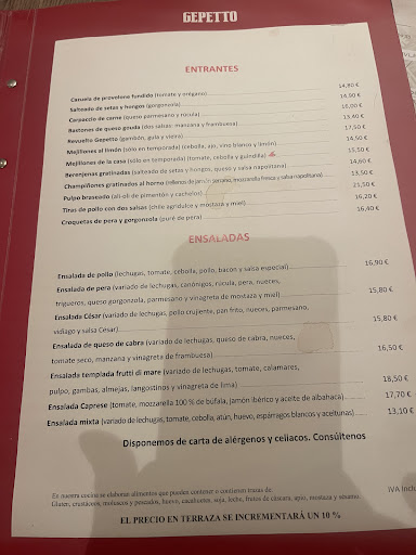 Read moreWe had pizza at Restaurant Gepetto Centro on Tuesday, August 5th. The pizzas were very poor: the base seemed to be pre-made (frozen?), the pizza was watery, and there were far too many toppings. An Italian restaurant would never use a pre-made base, the texture of the pizza should not be like a soggy pancake, and the amount of toppings should be very moderate. My pizza had what seemed like an entire can of mushrooms dumped on it, including all the liquid, without draining. We cannot recommend the restaurant to anyone, at least not for the pizza. The service from the waiter was...