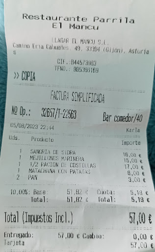 Después de terminar las parrilladas, nos dimos cuenta de que no nos habían traído las ensaladas, por lo cual se lo comentamos al personal y las pedimos. La camarera que nos atendió, la cual dijo que era la dueña, nos dijo literalmente "Se nos debió de olvidar, ¿qué queréis que haga?" a lo cual le dijimos que si nos las traerían o si nos las descontarían, puesto que vemos lógico que no nos cobren por algo que no nos traen / algo que no comemos, a lo cual nos dijo (que nos sentimos vacilados) "si quereis os descuento 1€ por la lechuga", que si nosotros nos hubiésemos dado cuenta antes de que faltaban las ensaladas, que nos las traían, dando a entender que la culpa era nuestra por no habernos dado cuenta antes de algo que es responsabilidad de ellos, puesto que desconocemos si las ensaladas las traen al principio, a la vez o al final. Que era normal que pudiesen pasar estas cosas con "el matu" que tenían, el restaurante tendría que llamarse mejor "Restaurante Parrilla El Matu", por todo el descontrol que tienen. Si no pueden con todo, deberían de contratar a más camareros. Y que si nosotros "no estábamos preparados para comer/salir por ahí", cuando estamos acostumbrados a salir todos los fines de semana a comer a distintos restaurantes, puesto que somos un club de coches de Asturias y queremos testear distintos sitios, para los días que hacemos rutas/eventos, para poder llevar 50/70 personas y saber que vamos a los mejores sitios y que no vamos a decepcionar a nadie, y que todos queden a gusto, satisfechos y contentos con la comida.