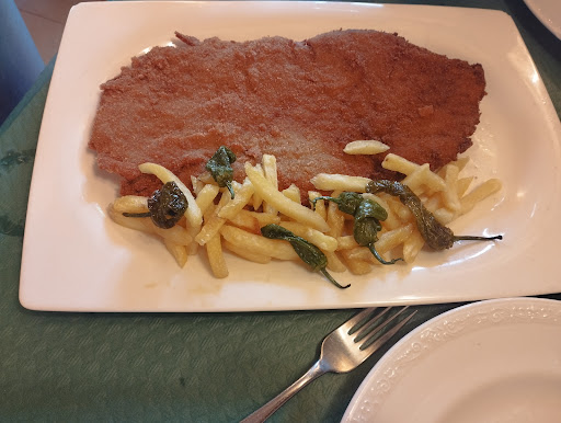 He ido a comer el menú del día, guiado también por las reseñas, y no sé si me han visto pinta de turista o qué porque nada tiene que ver con lo que me he encontrado. De menú me han ofrecido, de primero, solo dos platos: o "ensalada campera" o "revuelto de ajetes". De segundo solo una opción: "cachopo de lomo". Pedí el revuelto de ajetes y la pinta ya de por sí es poco apetecible, pero topé unos cuantos trozos bien grandes de tallos duros (más que gambas). Hacía mucho que no dejaba yo comida en un plato. El "cachopo de lomo" con jamón de ese cocido de embutido en vez de jamón en condiciones y, lo peor de todo, con patatas de esas congeladas precocinadas... con lo poco que cuesta cortar unas patatas normales y freírlas como se fríe esa porquería de bolsa -que ahí en el plato quedó casi toda-. De postre "flan", "natillas" o "yogur". He preguntado que si algo era casero y, no exagero, le ha dado la risa al camarero (bastante atento). Nada casero. He pedido las natillas y me traen una tarrina de esas de natillas industriales que valen cuatro un euro o menos, ni canela ni gaitas, ¿para qué? El pan tampoco es de calidad. Ya digo que hacía mucho que no comía tan mal en un sitio. Y a la que me iba he visto en otras mesas la "ensalada campera" y metía miedo, aunque a lo mejor...