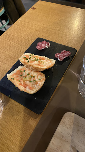 Read moreI am still so shocked also worth it the menú del día is. For around €16, the meal included bread, first dish, second dish, and dessert. Although the menú isn’t translated to English, one of the waiters was able to translate it for us. First we got pan con tomate w/ sausage (chorizo possibly). Then, we got the fideuada, which was really good. I especially loved the dollops of cream on it. Afterward, we got the fish of the day, which was laying over a bed of sweet potato mash and quinoa, and topped with a peanut sauce, and strudel, which had pulled meat inside and some sweet sauce (almost like bbq sauce but not really). Both were good, but we preferred the strudel. And for dessert, I got the carrot cake parfait. But if you are full or not into sweets, you can get coffee instead. We were left very full. I still can’t believe how affordable this considering not only the meal itself, but the plating of the dishes and the amazing service. I would highly...
