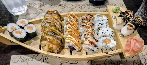 Read moreLa experiencia con la comida no fue mala. El servicio fue pésimo primero no nos tomaban la nota de las bebidas hasta que no insistimos al camarero, segundo cuando nos sirvieron la bandeja de sushi al camarero le cayo toda la soja por la mesa y tuvimos que insistir para que nos limpiasen lo que ellos mismos habían echo y lo que pasó es que vino la camarera y nos tiro la bayeta sobre la mesa como dándonos a ente der que nosotros mismos lo podíamos hacer, más tarde tuvimos que pedir porfavor si no podían cambiar los manteles y darnos servilletas ya que la atención era inexistente después de insistir cinco veces porfin nos hicieron algo de caso (no creo que estuviésemos pidiendo nada del otro mundo ni nosotros provocamos eso y aunque lo hubiésemos echo creo que hay unos mínimos que un camarero tiene que ofrecer a los clientes). El espacio en el restaurante es pequeño, que tampoco es algo malo pero nos tocó en una mesa apartada del aire acondicionado y el calor durante la cena era inaguantable, si no esta acondicionado para recibir una mesa de 6 personas mi opinión es que directamente no cojan la reserva o que por lo menos avisen de las condiciones. Por último pedimos unas piezas de sushi con unos panecitos comimos la mitad de los panes y los otros simplemente se comio el relleno ya que no les acabo de gustar la masa y sobraron un dos de piezas de sushi que eran los de barbacoa ( muy malos a nadie le gustaron), cuando les devolvimos los platos la camarera con una actitud agresiva y sin ningún tipo de respeto nos comunico que debíamos comer todo aunque algo no nos gustase que había refiriéndose a las dos piezas de sushi y los pedacitos de masa, también nos dijo que había muchos granos de arroz por el plato algo yo creo normal cuando estas comiendo con palillos, la cosa acabó que nos cobraron 10 euros de suplemento después de una cena que nos dejó muy mal...