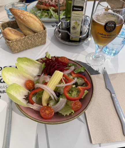 Read moreLo siento pero no volveremos nunca a este restaurante. No me importa pagar 24 € por un menu cuando la comida es buena y de calididad . Pero es que era lo más parecido a un salón de convenciones donde dudas si hay cocina por qué parecía que la comida era de catering varato. Nos toma nota una camarera muy amble y correcta, y en la bebida pido vino blanco por el tipo de comida que elegimos nos parecía más correcto, nos dice que vino blanco no tienen , eso ya me extraño bastante que no tengan por lo menos dos tipo de vino, bueno pedimos cerveza y la chica nos dijo que si, cuando pedimos la cuenta la encargada nos cobra la cervezas pues no entraban en el menú. Le comento a la encargada que la camarera eso no nos lo comentó. La encargada con mucha prepotencia y convencimiento me enseña la carta del menú donde solo detallaba vino , yo le conteste , si pero pero la camarera no me aviso de que las cervezas eran a parte. Me llamó a la camarera ella dijo que era verdad que no me lo dijo, y la encargada me contesta , te devuelvo el dinero de las cervezas 6€ pero se lo quitaré a la camarera de su sueldo, IMPRESIONANTE la poca vergüenza de la encargada. Porsupuesto que no lo permití. Le dije que no me devolviera nada, pero el gesto fue de una vergüenza ajena impresionante, eso delata en que condiciones tienen a sus jóvenes trabajadores .referente a la comida pésima una fideua mal elaborada y el bacalao recalentado al microondas. Hace seis hora que comí y aún tengo ardores. Girona que puede presumir de buena cocina sitios como este los...