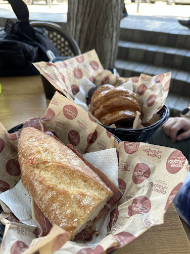 Read moreBuenas noches queridos amigos Este establecimiento que según me indica Manuel ,que nos sirvió, hace ya 7 años que está al servicio de los gerundenses en este establecimiento especializado en bollería artesanal ,por que el mismo Manuel nos comenta que está todo realizado en horno de leña de pino,pero a continuación explico tres puntos interesantes de este establecimiento. 1,el trato del servicio resulta muy amable y agradable ,no puedo sacar ninguna pega o inconveniente, aunque en este tipo de establecimientos la preparación del servicio no es muy necesaria,destacó que quien nos atendió, resultó muy correcto. 2,los productos son súper correctos, realmente están muy buenos y se notan frescos y de elaboración artesanal, creo que no se puede pedir más, dentro de la oferta de este tipo de establecimientos. 3,el precio está dentro de lo normal en la relación calidad precio. Tras estas consideraciones y hablando de un forma global pienso que este establecimiento es muy recomendable para ser visitado ,pienso que 🤔 para un establecimiento de estas características y tras 7 años de actividad su calidad está demostrada,aconsejo visitarlo y disfrutar de un buen café ☕ y...