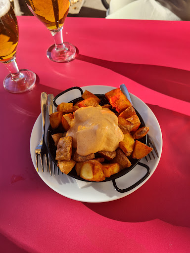 Read moreADVERTENCIA Solo puntúo sobre patatas bravas - braviolis. El local esta situado en el centro de Girona. ¹El servicio fue en terraza correcto y ágil. La decoración del bar no tiene nada que destacar En cuanto a las patatas bravas, nos las presentan sobre una pequeña sarten con la salsa ya dispuesta sobre las patatas Las patatas IMPRESIONANTES de lo mejor que he probado. Hechas a mano, con piel. una fina capa exterior crujiente y cremosas por dentro. La salsa: Una salsa rosa aparentemente industrial sin ningun tipo de picor que desmerece a las patatas. El pan: no nos sirven pan con la ración, la salsa tampoco llama al unte. Relacion calidad cantidad precio 6 sobre 10. Pros: elaboración de las patatas y precio Contras: La salsa y falta de pan. Si se esmeran, pueden llegar a tener un buen producto, Cuando vuelva a Girona...