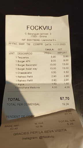 Tot i que el lloc és una passada i el menjar és en general bo i en molt bona quantitat, Fock Viu s'ha convertit poc a poc i ha anat baixant la qualitat d'alguns del ingredients, així com ha canviat la manera d'atendre els comensals, fent que una molt bona hamburgueseria per la qual pagaves un preu elevat amb gust hagi acabat sent una hamburgueseria un pèl cara pel que ofereix.