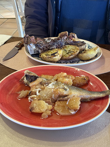 This restaurant was definitely one of my top restaurants during my first trip to Spain. During our visit, we ordered two separate set menus, one for my wife and one for myself. We ended up ordering steamed mussels and escargot for starters and 500gr of dry aged sirloin steak and seabass as the fish of the day. Before our order, we were served with pan con alioli y tomate that was fun and delicious to try. The garlic and tomatoes were flavorful and fresh and complimented the bread nicely. For starters, the steamed mussels were very fresh, and well-seasoned while not being too overwhelming. The escargot, which we tried for the first time, was honestly not my personal favorite, but something my wife enjoyed very much. It came with two different sauces, one creamy garlic sauce and another more tomato-based. For the main course, the dry aged sirloin had such a unique woodfire flavor that was perfectly cooked while still maintaining a juicy texture that I will continue to remember for a long long time. The sea bass was also excellent. Its tomato-based broth was delicious, and the fish was cooked perfectly, maintaining a crispy skin while ensuring a tender meat underneath. We were also served with a whole bottle of local red wine that was sweet and decadent. Considering it was part of our set menu, and not a separate order, I have to say this was very very generous on the restaurant’s part! Overall, the restaurant was very generous in its portions, and the staff were very friendly and attentive. My wife and I had a great time at the restaurant and I highly recommend that you pay a visit to this restaurant if you happen to stop by Girona. Plus, a special shoutout to a very nice lady customer who retrieved my wife’s engagement ring she left in the bathroom. I am forever in your debt!
