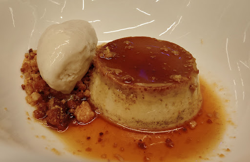 Los postres también nos sorprendieron mucho. No tenían tarta de queso, pero el flan de avellana con helado de avellana fue simplemente de 10. Más parecido a una panna cotta que a un flan, pero de lo mejor que hemos probado.