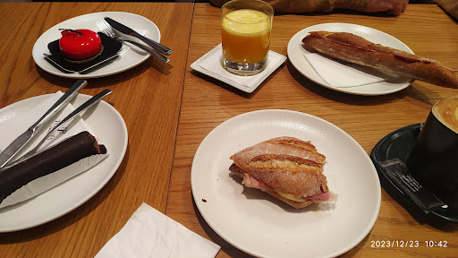 Read moreFatal. Fui a desayunar 2 minis y dos cafés, 10'50€... Tardaron en venir a la mesa y eso que nos veían. Cuando nos tomaron nota, yo pregunté de qué embutidos podrían ser...? Bueno, no paró de repetir que tenía que ir a la barra a mirar solo lo que tenían, finalmente para no levantarme , porque no me daba la gana, pedí uno de los que me dijo que sí tenían... Esperamos 10 minutos, primero le trajeron el mini a mi acompañante, después trajeron mi americano, después vino y me dijo que no tenían el mini que yo había pedido y por último trajeron el café con leche. ¿Es correcto lo que pagué? Porque para toda esta tocadura de narices, me parece que tenía que haber pagado 1€. ¿Pueden ser más incompetentes? Nada que ver con la pastelería y porque es para llevar. El servicio es super antipático y una de las camareras , que creo que es marroquí, trata fatal a sus compañeras, supongo que debe ser la encargada, pero vaya .. que todo se...