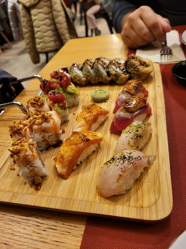 Read moreHemos ido hoy a comer, por primera vez, por una recomendación. No volvería ni aunque fuese el único sitio para comer del mundo. De todos los sushis que hemos ido, sin duda ninguna el de peor calidad. 35€ dos personas, para la calidad y variedad que dan, no compensan para nada. Salimos rápido, y fuimos a otro lugar a comer, porque sin duda, todo estaba incomestible. El pollo rebozado, estaba como mojado, con un sabor extraño, el cerdo tenía mejor pinta pero dejaba un regustillo ácido, como si estuviese malo, las gyozas con 0 sabor, solo sabían a masa. La salsa agridulce parecía compota de manzana picante. Los sushis estaban horribles, salía demasiado el vinagre de arroz. Los platos que tendrían que venir caliente, como fideos, carnes, etc. Estaban fríos. Si, es gracioso lo de la cinta, pero sinceramente, por la gracia de la cinta, no vale la pena pagar este precio, porque de verdad, la calidad era pésima. El servicio un poco indiferente, no podría dar una opinión, porque no hubo a penas interacción. Lo que no me explico es que cuando nos marchábamos había gente esperando para entrar... Por lo que he leído en otras reseñas, anteriormente había más calidad. Insto a todo aquel que quiera ir que sobretodo vea las reseñas más recientes, porque no...