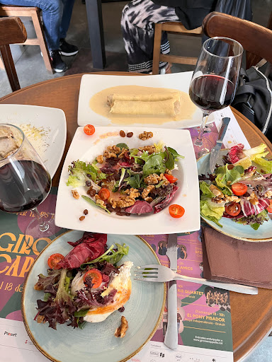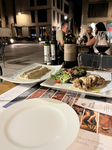 Great selection of wines (regional and Spanish) and beers. Tapas selection had options that anyone would like. The cheese and bread is great. It is a small cozy place that feels as local as you can get in Girona. And the Postres are incredible. We had the lemon sorbet with vodka, chocolate truffles with Baileys and ratafia to finish the...