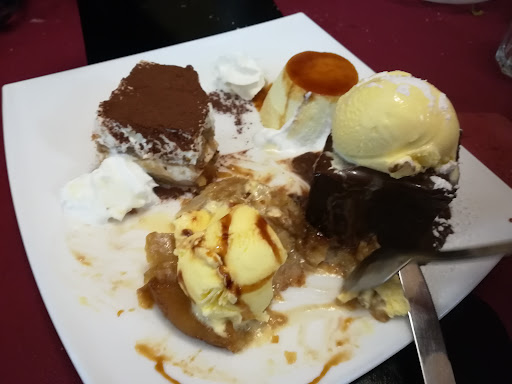 Ensalada Cambembert (aliño muy bueno y con varios tipos de fruta). Croquetas variadas (muy buenas). Saquitos de Calabacín (una especie de tosta con calabacín enrollado con jamón y queso. Para mi gusto, tenían poco sabor aún llevando por encima una capa de queso de cabra). Taco de atún envuelto en sésamo (personalmente, no me gustó. El atún estaba demasiado hecho) Postres; coulant (muy bueno) y tiramisú (bien). Bebidas: 2 cervezas y 2 aguas.