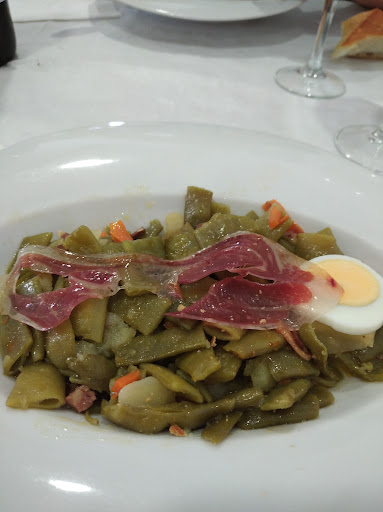 Read moreMe recomendaron ir a comer a este sitio, y aproveché la ocasión para comer en familia por mí cumpleaños. Comemos el menú fin de semana, 23€ IVA incluido con vino, agua y gaseosa. Los platos en general correctos, la ensalada de gulas, pulpo y gambas muy rica, y las carrilleras muy buenas, pero otros platos como la paella pierde su gracia porque el arroz estaba pasado. A la hora de la comida decido cambiar de vino para elegir otro crianza más de nuestro gusto. En algunos restaurantes se puede cambiar de vino en menús cerrados y te cobran la diferencia del original ofrecido al elegido. En este caso al pedir la cuenta, te cobran las botellas pedidas tal cual, o sea que te cobran el vino en cierta manera dos veces: el que va incluido en el menú y el que pides aparte. Es una pena que no se instalen otros criterios para este tipo de opciones... Por lo demás el trato correcto. Resumen: comida correcta, trato correcto, pero sin que te llame nada...